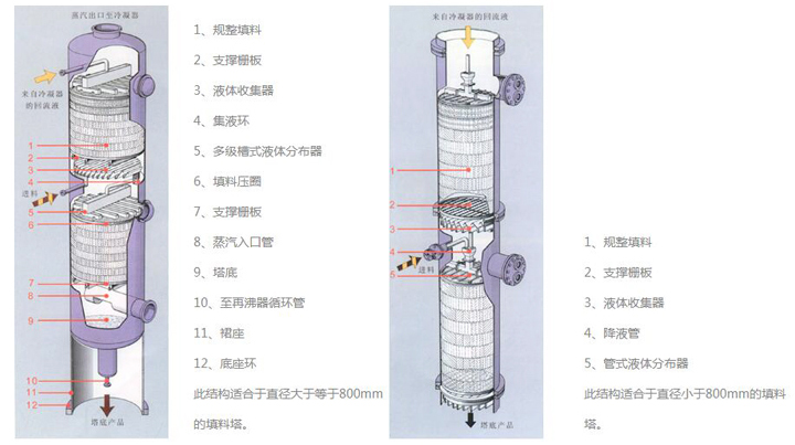 規(guī)整填料塔的分離性能取決于內(nèi)件,即填料、分布器、收集器等。同時(shí)也取決于許多參數(shù),如氣體負(fù)荷、液體負(fù)荷、物料性質(zhì)、操作壓力、填料濕潤(rùn)性能和液體分布不均勻等等。至今不能由填料的幾何形狀來準(zhǔn)確計(jì)算塔的分離性能,需要通過填料塔的理論和不同條件下通過試驗(yàn)塔來測(cè)定準(zhǔn)確數(shù)據(jù)。用戶可根據(jù)資料以近似程度確定塔的尺寸和需要的填料高度。如果需要經(jīng)濟(jì)、合理的結(jié)構(gòu)形式,我廠愿與用戶密切合作。