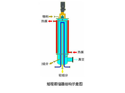 一、物料在加熱面上形成液膜的距離到達內置冷凝器并冷凝下來,通過蒸發(fā)器底部的出料口排出,重組份進入短程蒸餾器的殘渣收集槽并從側面的出口排出。